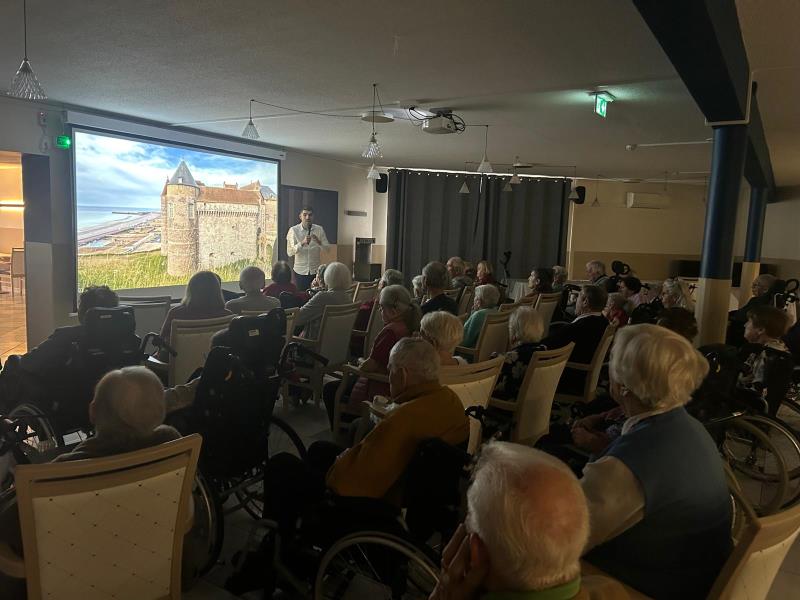 Aujourd’hui, un léger changement de programme attendait les résidents : au lieu du quiz du mercredi, une conférence était consacrée à la Seine-Maritime, département normand riche en histoire, en paysages et en traditions.