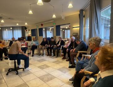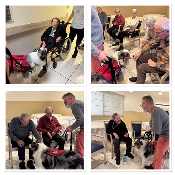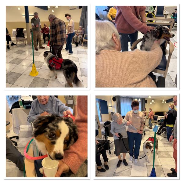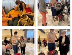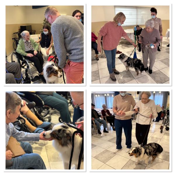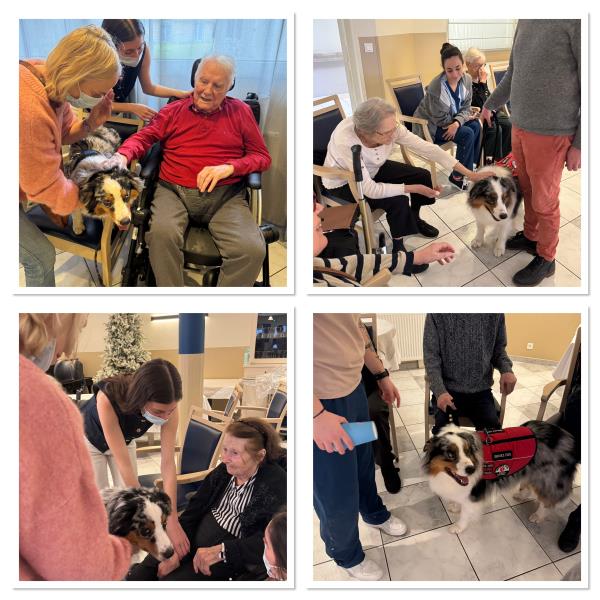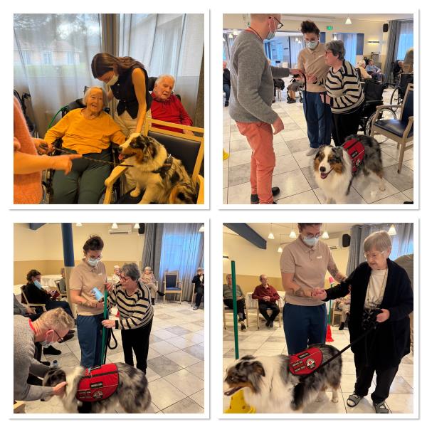 Comme une semaine sur deux, les résidents ont eu aujourd’hui le plaisir d’accueillir de nouveaux candidats au concours du plus beau berger australien de Médicis 2026. Entre moments de câlins et ateliers de motricité, chacun a pu profiter de cette animation selon ses envies. Une fois encore, cette activité a démontré à quel point la présence des petits bouchons constitue un véritable vecteur de lien social, favorisant les échanges, le bien-être et les sourires partagés. Le PASA organisait des petits jeux de mémoire