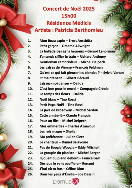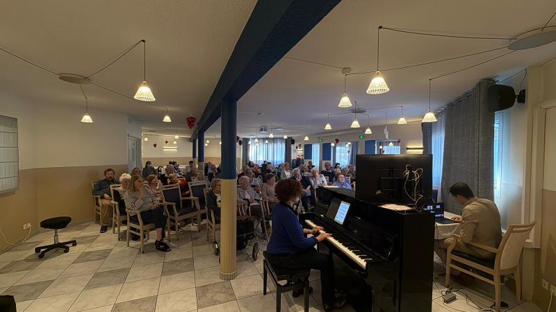 À la veille du réveillon de Noël, les résidents ont eu le plaisir d’assister à un concert de piano aux accents festifs, spécialement offert pour l’occasion par Patricia, la fille de l’un des résidents. Ce moment musical, empreint de douceur et de convivialité, a su créer une atmosphère chaleureuse et apaisante, invitant chacun à partager l’esprit de Noël à travers les notes délicates de l’instrument.