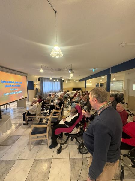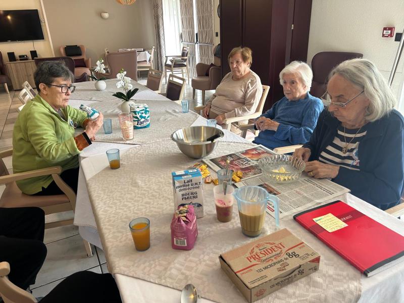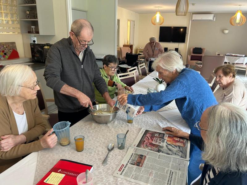 Ce jour-là, la résidence s’animait d’une atmosphère particulièrement conviviale. Au PASA, un atelier crêpes était organisé afin de régaler les papilles de nos résidents, séduits par les douces effluves de pâte dorée. Pendant ce temps, d’autres résidents laissaient libre cours à leur bonne humeur en participant à un joyeux karaoké, mêlant rires et chansons dans une ambiance des plus chaleureuses.