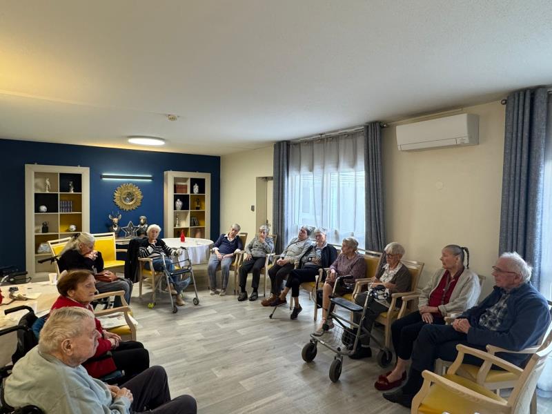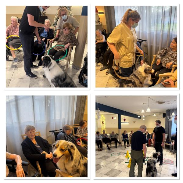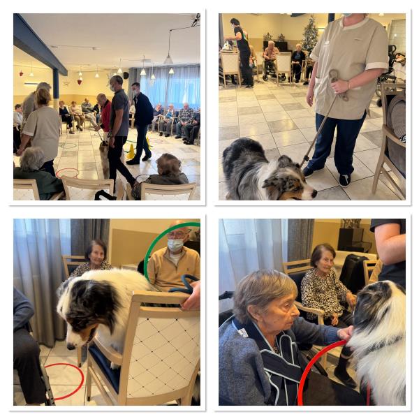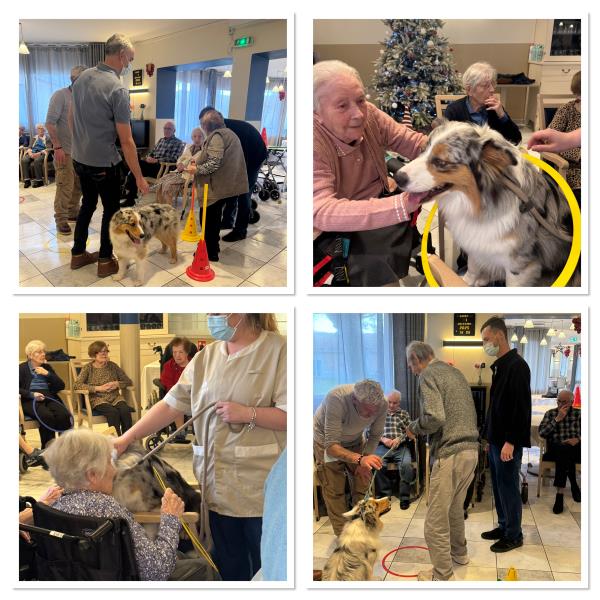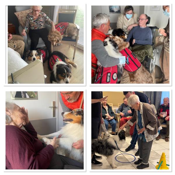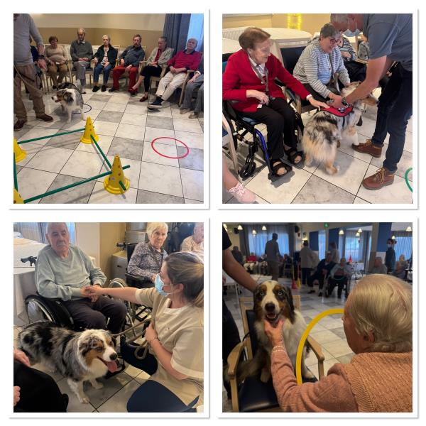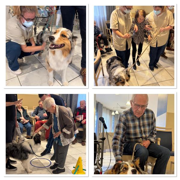 L’après-midi, la séance de canithérapie a apporté douceur et sourires dans la grande salle à manger.