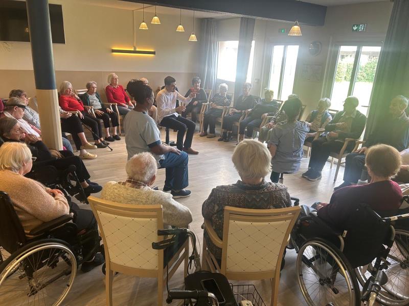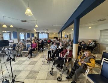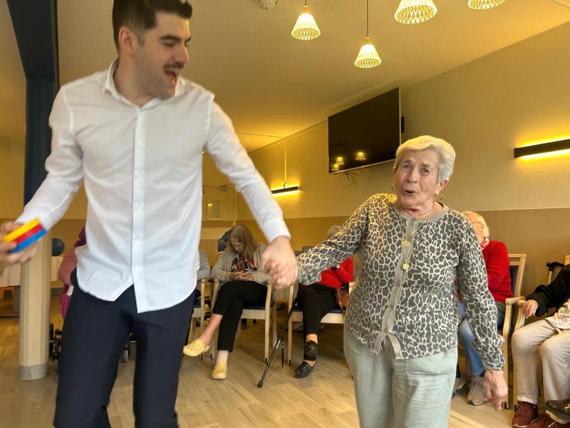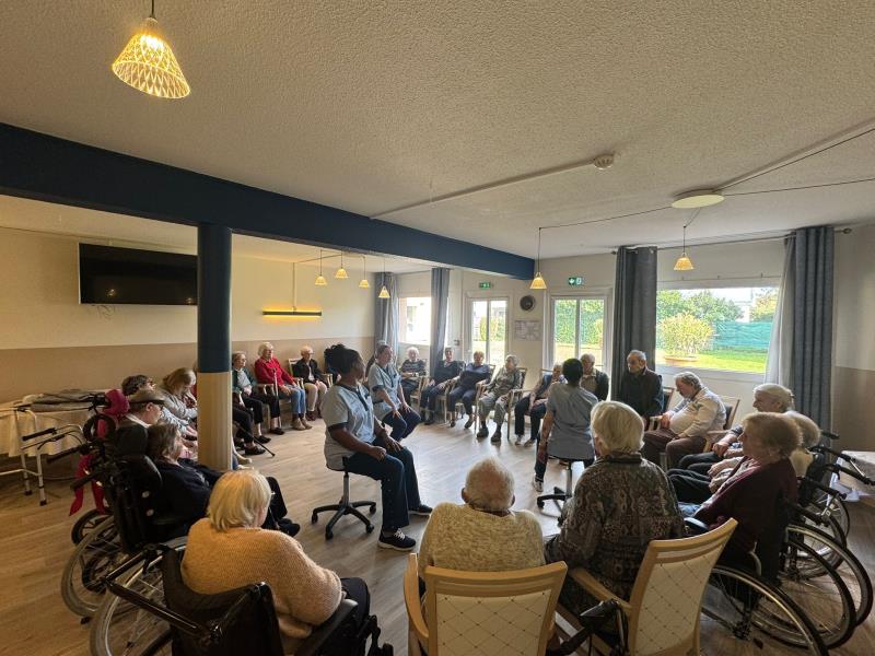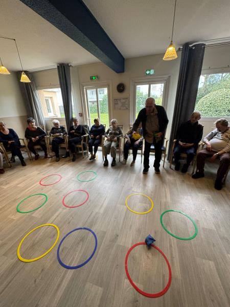 Le vendredi, le petit salon prend des allures sportives et ludiques. Les résidents se retrouvent autour de jeux d’adresse qui sollicitent précision, coordination et esprit d’équipe, dans une ambiance chaleureuse et conviviale. Rires et encouragements rythment ces instants de partage, favorisant à la fois la motricité et la confiance en soi.