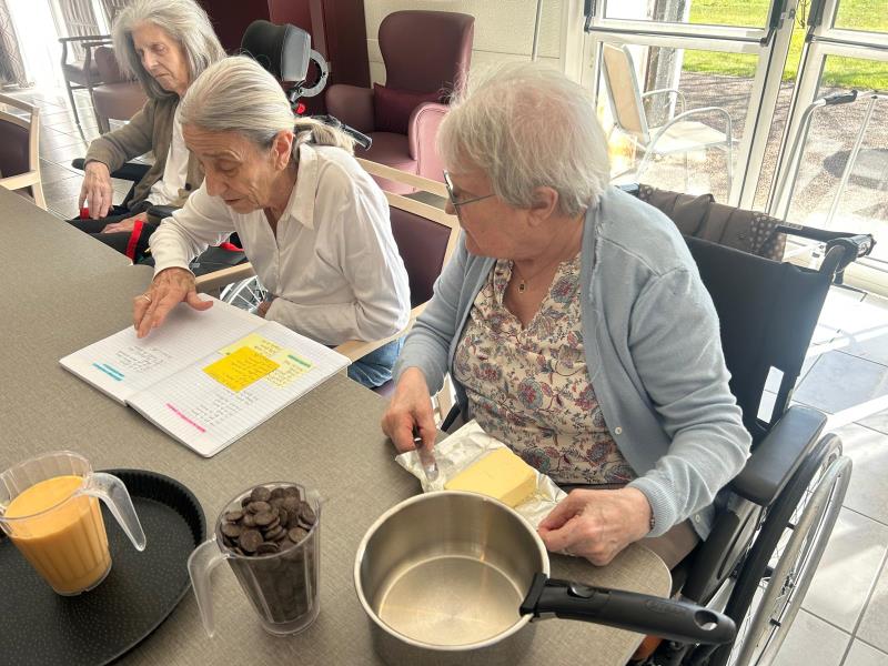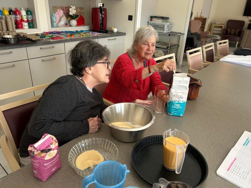 Pendant que la musique s'emparait des salons, dans une ambiance culinaire, les résidents ont participé à un atelier pâtisserie. Entre le maniement du rouleau et le dosage du sucre, de délicieux petits gâteaux ont été confectionnés avec soin.Â