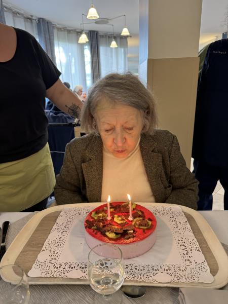 Joyeux anniversaire en ce mercredi 7 janvier à Madame Abbé. Les résidents et salariés se sont retrouvés pour le lui souhaiter à midi autour d'un délicieux gâteau à la framboise. 🎂