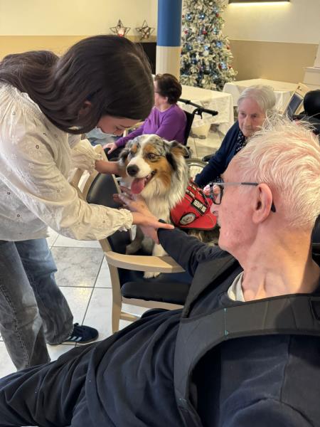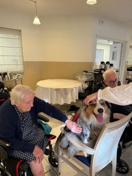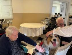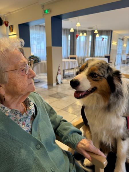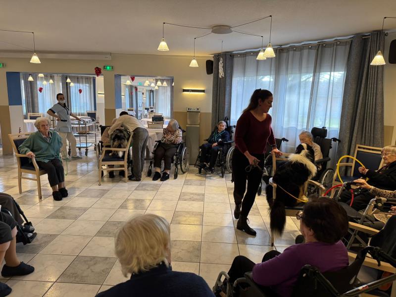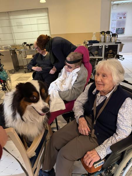 Après un week-end cinémédicis, une jolie surprise attendait les résidents ce jour. Frantz est venu offrir un moment de bonheur à l’ensemble de la résidence en amenant ses petits bergers australiens, pour cette dernière de l’année 2025. Le jeu et la convivialité ont pris le pas sur l’exercice, pour le plus grand plaisir de tous. Un instant chaleureux et réconfortant, à trois jours de Noël.