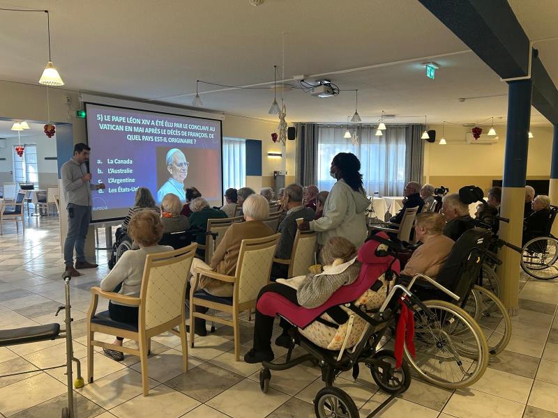 Aujourd’hui s’est tenue la dernière animation de l’année 2025, placée sous le signe de la convivialité et du souvenir. À cette occasion, les résidents ont participé à un quiz rétrospectif retraçant les temps forts de l’année écoulée.