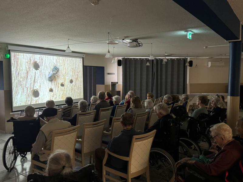 Sous un ciel légèrement voilé, les résidents ont pris part à une conférence passionnante consacrée au monde fascinant des abeilles. La rencontre s’est ouverte par la projection d’un reportage mettant en lumière la vie méconnue des abeilles sauvages, véritables artisanes de la pollinisation et gardiennes de la biodiversité.