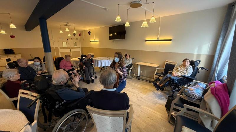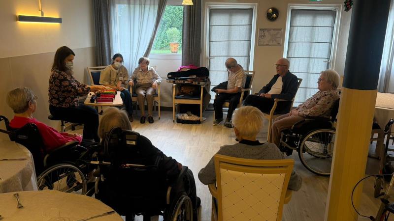 La matinée a été consacrée à une séance de musicothérapie, qui a permis à chacun de se détendre, de stimuler ses émotions et de raviver de précieux souvenirs à travers l’écoute de mélodies apaisantes. Les résidents ont pu se laisser porter par la musique, favorisant ainsi la relaxation et l’expression des ressentis.