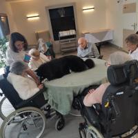 Publiée le 25/04/2023Tous les mardi après midi, à la résidence, c'est une séance de médiation animale. La médiation animale est basée sur l'attrait que l'animal exerce auprès des personnes et sur sa capacité à les stimuler. L'animal Anime une EnVie qui permet de créer ou de fac [...] Lire la suite