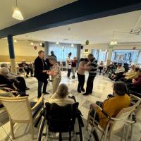 Publiée le 15/04/2025Ce mardi, la résidence a vibré au rythme de la danse grâce à la venue de Dominique, maître danseur. Les résidents ont eu le plaisir de participer à un après-midi placé sous le signe de la valse, samba... Ce moment de partage et de joie a permis à chacun de s'évader, de bouger à son rythme et de savourer pleinement l’instant présent, le tout guidé avec bienvei [...] Lire la suite