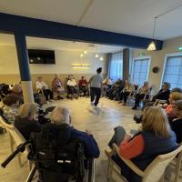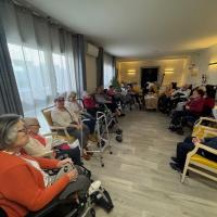 Publiée le 12/11/2024Aujourd'hui, les petits bouchons étaient de sortie à la résidence Médicis. L'après-midi a été rythmé par 3 moments distincts, permettant au plus grand nombre de résidents de profiter de cette activité. Dans un premier temps, les chiens les plus expérimentés ont commencé par des visites en chambre auprès de certains résidents. Ensuite, un moment collectif a r [...] Lire la suite