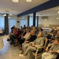 Publiée le 18/10/2024Pour terminer cette semaine maussade sur le plan météorologique, les résidents ont participé à une revue de presse ainsi qu'une animation inspirée du célèbre jeu "N'oubliez pas les paroles". L'objectif n'était pas de remporter le gros lot, mais de passer un moment convivial ensemble en se remémorant les chansons d'autrefois qui ont marqué tant d'années. Parallèl [...] Lire la suite