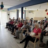 Publiée le 22/08/2024Par cette belle journée ensoleillée, quoi de mieux que de se laisser porter par les mélodies des cordes sous le soleil ? Les résidents ont eu le plaisir d'assister à un concert de guitare qui a apporté joie et bonne humeur à la résidence. Ils ont également pu faire résonner leurs voix mélodieuses, contribuant ainsi à l'atmosphère joyeuse et conviviale de l'évé [...] Lire la suite