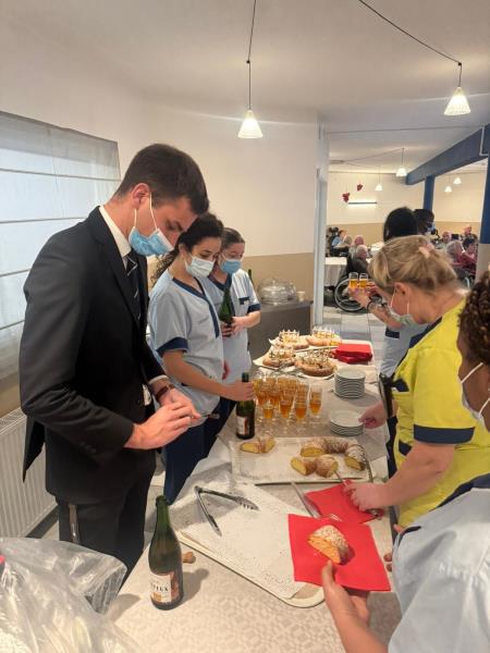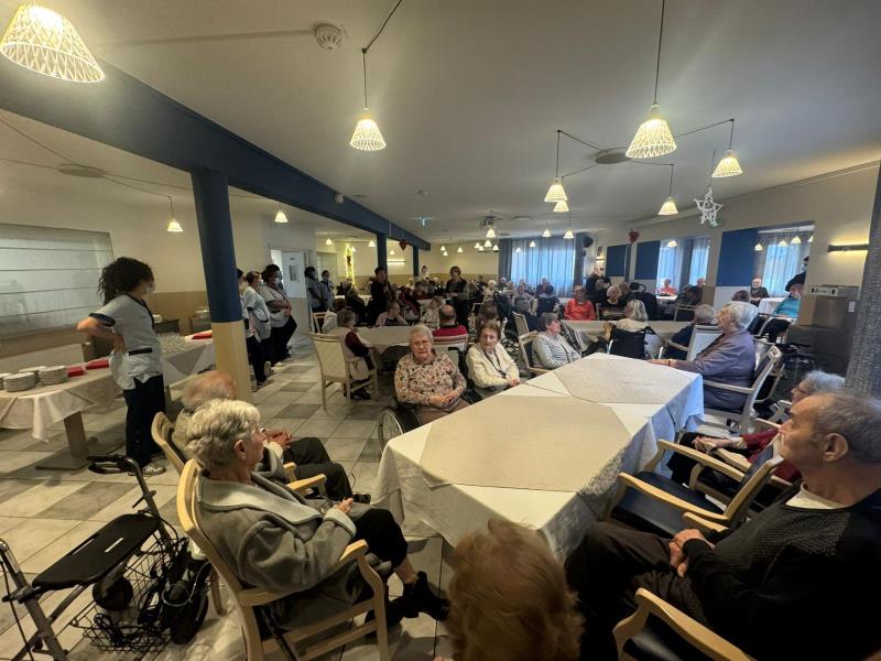 Aujourd'hui s'est déroulée la traditionnelle cérémonie des vœux de la Mairie de Mérignac à l'intention des résidents. Monsieur le Maire, Thierry Trijoulet, par l'intermédiaire de son Adjointe, Madame Mauricette BOISSEAU, a souhaité tout plein de petits moments de bonheur aux Résidents, à leur famille et à l'ensemble du personnel. La Municipalité nous a régalé avec la traditionnelle galette des rois, arrosée de cidre tout droit sorti de la cave de la résidence ! Parallèlement à cet événement, un petit concert a été organisé pour éveiller l'appétit des résidents. Un moment convivial qui a été apprécié par tous !