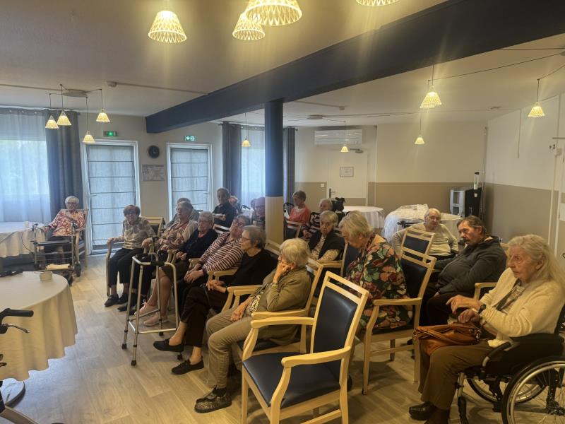 Aujourd’hui, plusieurs activités ont rythmé la vie de l’établissement dans une ambiance conviviale et stimulante. Certains résidents ont participé à une partie de petit bac, exercice ludique qui sollicite la mémoire, la réflexion et la rapidité d’esprit, tout en favorisant les échanges et les sourires partagés. Parallèlement, d’autres se sont retrouvés au PASA autour d’un quiz musical, laissant résonner souvenirs et mélodies connues, et ravivant parfois quelques airs qui accompagnent leur histoire.