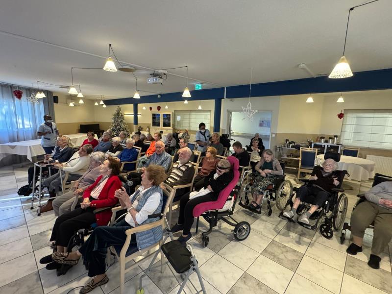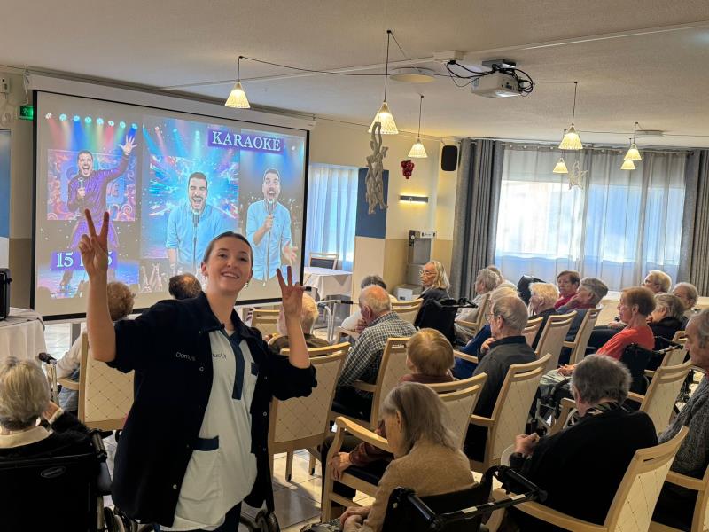 Aujourd’hui, la résidence a vibré au rythme d’un karaoké géant qui a rassemblé de nombreux résidents ainsi que du personnel dans une ambiance festive et conviviale. Chansons d’hier et d’aujourd’hui ont résonné, suscitant sourires, souvenirs et élans de bonne humeur partagés. Un moment idéal pour faire le plein d’énergie et de bonne humeur avant d’aborder avec enthousiasme les derniers jours de l’année 2025.