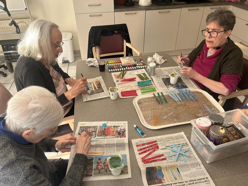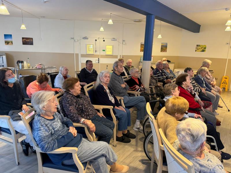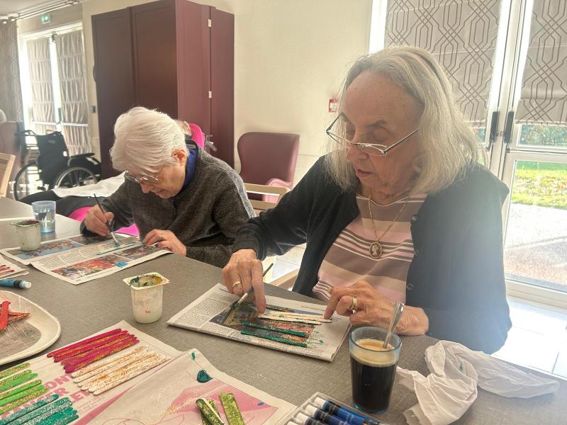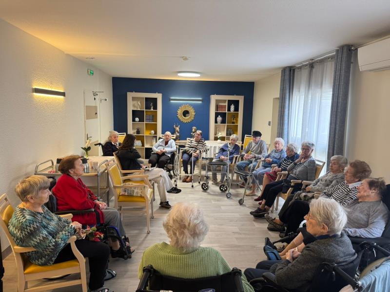 L'après-midi a ensuite laissé place à deux ambiances distinctes mais tout aussi animées. Du côté du PASA, la magie des fêtes commence doucement à s'installer : les résidents ont mis leur créativité à l'honneur en confectionnant les premières décorations de Noël. Pendant ce temps, dans le petit salon, la concentration était au rendez-vous autour d'une partie de « Petit Bac interactif », idéale pour stimuler la mémoire et le vocabulaire !